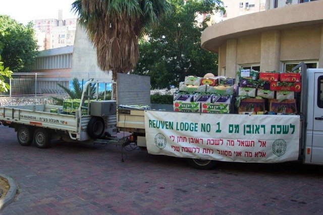 ולכן, ביום שני כ"א בתמוז תשס"ג, 21/07/2003 הביאה לשכת ראובן תרומה של כשניים וחצי טון אספקה טרייה של פירות וירקות ל"מרכז ארוחות לכל דיכפין" המנוהל ע"י גב' רחל מרום בנוה שאנן בחיפה. האספקה הובאה למקום במשאית שנתרמה ע"י אחינו מאיר שריקי בעל חברת שי הובלות |