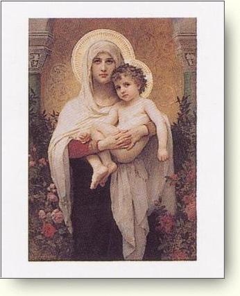 in her arms and a glory around her.