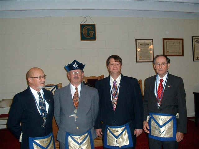 (L - R ) Fred Rauch - Senior Warden, Bill West - Worshipful Master, Ronald Dubois - Junior Warden, & M. L. Green - Secretary