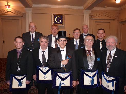 Our newest Past Master, Bob Blackwell Jr., Worshipful Master, Carl Walsh and Installing Officer, Rt. Wor. Roger Toms